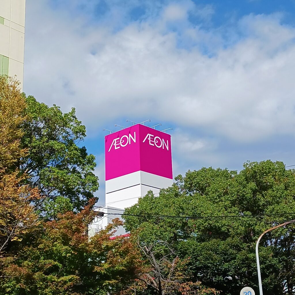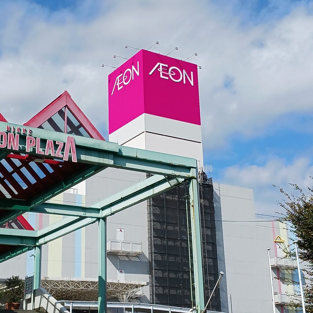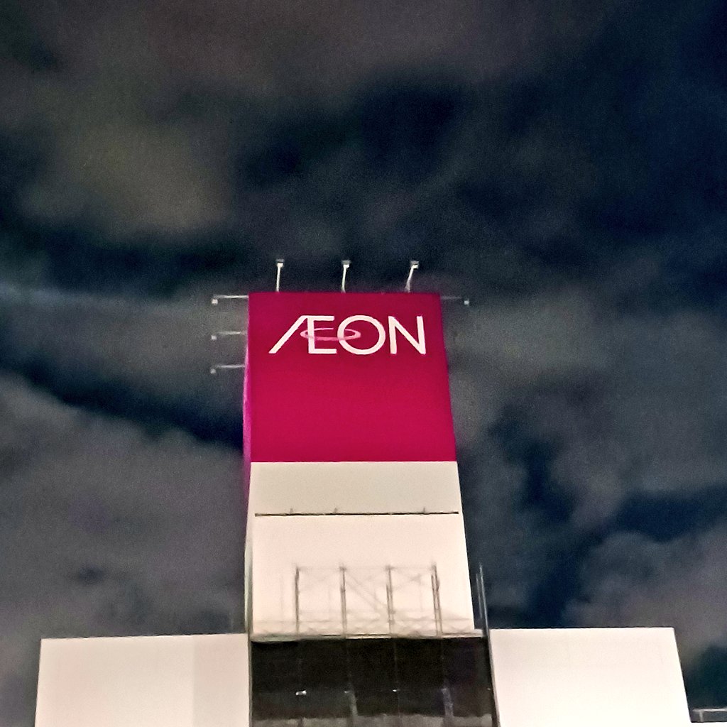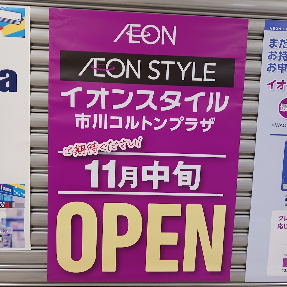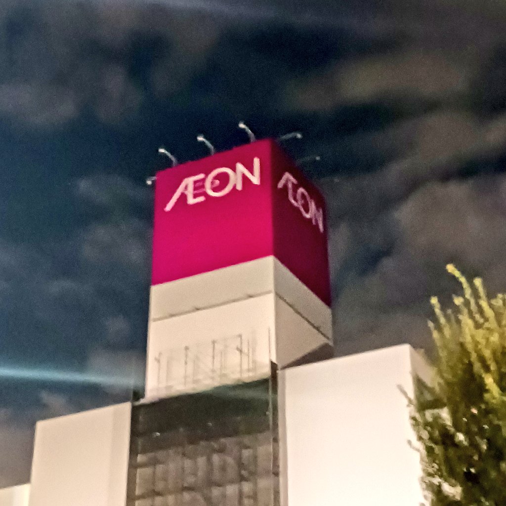 旧ダイエーいちかわコルトンプラザ店の塔屋看板が、いつ、イオンスタイル市川コルトンプラザのものに変わるか、日々、ウォッチしていた当研究所の代表、鈴木は、2025年10年26日の朝、看板に「AEON」の文字が出現したことを確認しました。