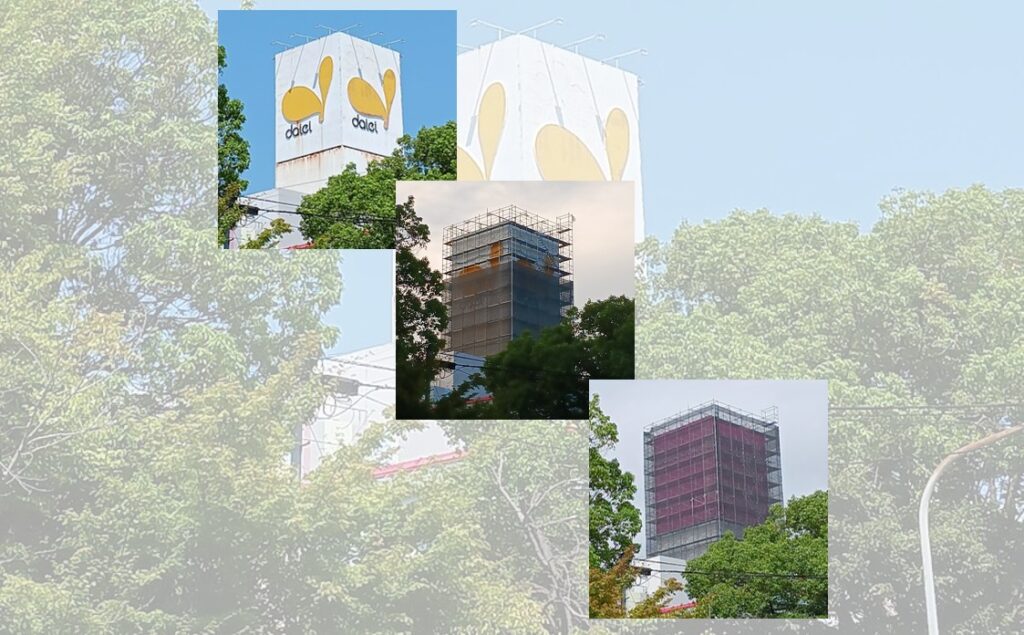 塔屋看板は、まもなくイオン(イオンスタイル)のものに変わりそうですね。