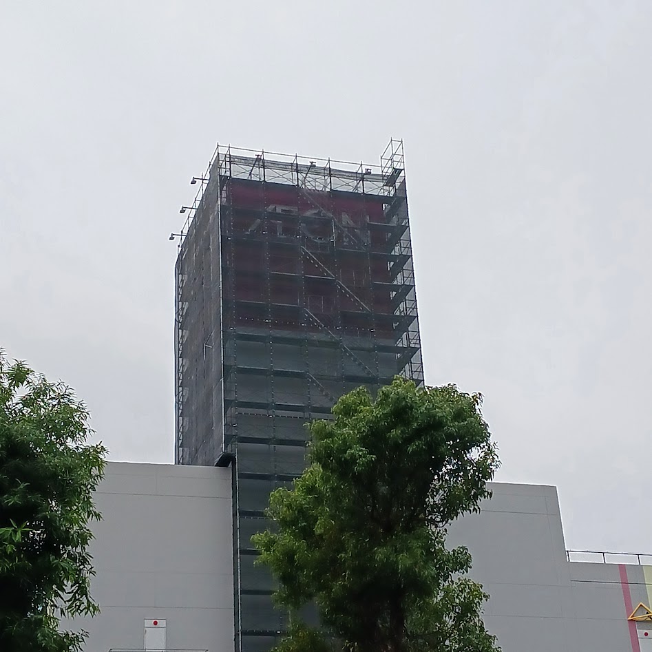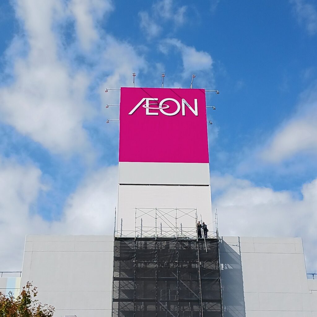 10月27日には、塔屋看板を覆っていた囲いが外されました。ついにあらわになったAEONのロゴです。