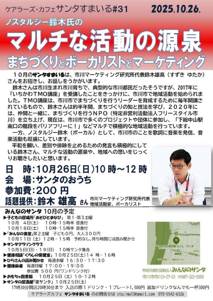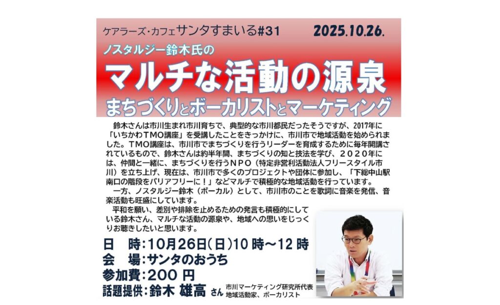 【おしらせ】代表の鈴木が登壇します|「ケアラーズ・カフェ サンタすまいる」2025.10.26